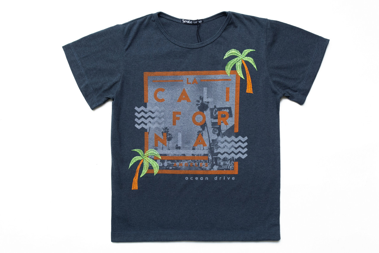 Бавовняна футболка для хлопчика з принтом та вишивкою Смайл Тайм SmileTime California Ocean Drive